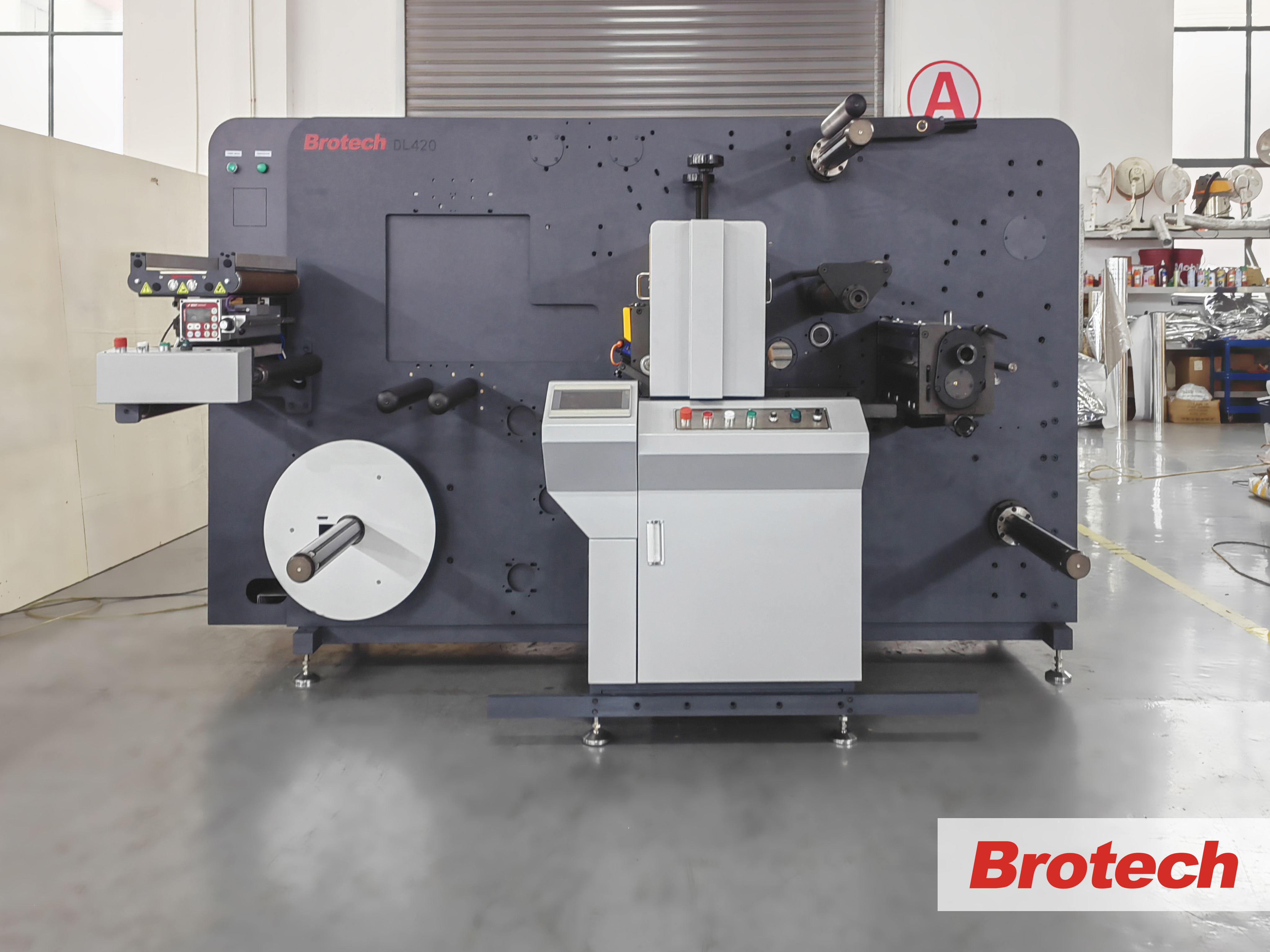该设备预留了柔印单元的位置,整机设计结构紧凑,同时支持全轮转与间歇式模式的模切,还具有膜内标功能以及收集床和振动堆叠装置,同时适用卷对卷与卷对单张的标签后加工。