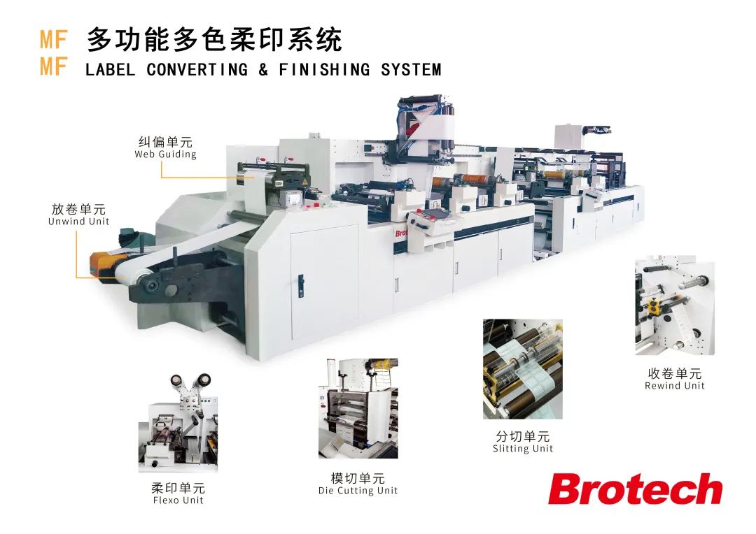 The MF multi-functional label printing & converting system combined with multiple flexo units and die cutting units,for flexo printing, spot varnish, super varnish, cold foil, lamination,die cutting and slitting etc. With modular design, the max mechanical speed can reach to 135m/min. Also it can be upgraded upon customerized request.